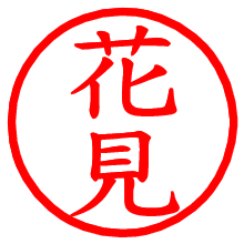 [朱肉の色]を選び、入力窓に“花見”と入力して[生成]ボタンを押すと、印影が更新され、リンクから電子印鑑(デジタル印影)がダウンロードできます。 電子印鑑「花見」の作り方文字表示が変なときや、文字バランスが悪いときは[字形切替]のチェックボックスでON/OFFを切り替え[生成]しなおしてください。 生成される画像は通常の印影「花見.png」と、にじみを表現した少し太めの印影「花見B.png」の背面透過PNG形式2種と、鮮明なPDF形式の印影「花見.pdf」の計3種類です。 朱肉の微妙な色の違いを7色で表現しました。デフォルト(左端)は、JISが定めた朱肉の色のマンセル値(7.5R 5/14)をRGB値(217,66,54)に変換したものになっています。 「電子透かし」にチェックを入れて[生成]ボタンを押すと、タイムスタンプを電子透かしとして埋め込んだセキュアな電子印鑑が作れます。詳細は別ページの「タイムスタンプと電子透かし」でご覧ください。 花見さんの日付印が作れます。「日付スタンプメーカー」は、社内向けの書類に利用されることの多い日付印(データ印)が無料で作れるWebアプリケーションです。中段に日付が入り、上段と下段は、ともに8文字まで文字が入ります。 ![]() 古代文字で落款印が作れます。「落款スタンプメーカー」で作品を引き立たせる落款印が作れます。