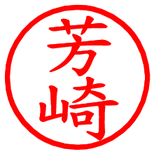 [朱肉の色]を選び、入力窓に“芳崎”と入力して[生成]ボタンを押すと、印影が更新され、リンクから電子印鑑(デジタル印影)がダウンロードできます。 電子印鑑「芳崎」の作り方文字表示が変なときや、文字バランスが悪いときは[字形切替]のチェックボックスでON/OFFを切り替え[生成]しなおしてください。 生成される画像は通常の印影「芳崎.png」と、にじみを表現した少し太めの印影「芳崎B.png」の背面透過PNG形式2種と、鮮明なPDF形式の印影「芳崎.pdf」の計3種類です。 朱肉の微妙な色の違いを7色で表現しました。デフォルト(左端)は、JISが定めた朱肉の色のマンセル値(7.5R 5/14)をRGB値(217,66,54)に変換したものになっています。 「電子透かし」にチェックを入れて[生成]ボタンを押すと、タイムスタンプを電子透かしとして埋め込んだセキュアな電子印鑑が作れます。詳細は別ページの「タイムスタンプと電子透かし」でご覧ください。 芳崎さんの日付印が作れます。「日付スタンプメーカー」は、社内向けの書類に利用されることの多い日付印(データ印)が無料で作れるWebアプリケーションです。中段に日付が入り、上段と下段は、ともに8文字まで文字が入ります。 ![]() 古代文字で落款印が作れます。「落款スタンプメーカー」で作品を引き立たせる落款印が作れます。