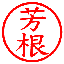 [朱肉の色]を選び、入力窓に“芳根”と入力して[生成]ボタンを押すと、印影が更新され、リンクから電子印鑑(デジタル印影)がダウンロードできます。 電子印鑑「芳根」の作り方文字表示が変なときや、文字バランスが悪いときは[字形切替]のチェックボックスでON/OFFを切り替え[生成]しなおしてください。 生成される画像は通常の印影「芳根.png」と、にじみを表現した少し太めの印影「芳根B.png」の背面透過PNG形式2種と、鮮明なPDF形式の印影「芳根.pdf」の計3種類です。 朱肉の微妙な色の違いを7色で表現しました。デフォルト(左端)は、JISが定めた朱肉の色のマンセル値(7.5R 5/14)をRGB値(217,66,54)に変換したものになっています。 「電子透かし」にチェックを入れて[生成]ボタンを押すと、タイムスタンプを電子透かしとして埋め込んだセキュアな電子印鑑が作れます。詳細は別ページの「タイムスタンプと電子透かし」でご覧ください。 芳根さんの日付印が作れます。「日付スタンプメーカー」は、社内向けの書類に利用されることの多い日付印(データ印)が無料で作れるWebアプリケーションです。中段に日付が入り、上段と下段は、ともに8文字まで文字が入ります。 ![]() 古代文字で落款印が作れます。「落款スタンプメーカー」で作品を引き立たせる落款印が作れます。