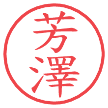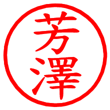 [朱肉の色]を選び、入力窓に“芳澤”と入力して[生成]ボタンを押すと、印影が更新され、リンクから電子印鑑(デジタル印影)がダウンロードできます。 電子印鑑「芳澤」の作り方文字表示が変なときや、文字バランスが悪いときは[字形切替]のチェックボックスでON/OFFを切り替え[生成]しなおしてください。 生成される画像は通常の印影「芳澤.png」と、にじみを表現した少し太めの印影「芳澤B.png」の背面透過PNG形式2種と、鮮明なPDF形式の印影「芳澤.pdf」の計3種類です。 朱肉の微妙な色の違いを7色で表現しました。デフォルト(左端)は、JISが定めた朱肉の色のマンセル値(7.5R 5/14)をRGB値(217,66,54)に変換したものになっています。 「電子透かし」にチェックを入れて[生成]ボタンを押すと、タイムスタンプを電子透かしとして埋め込んだセキュアな電子印鑑が作れます。詳細は別ページの「タイムスタンプと電子透かし」でご覧ください。 芳澤さんの日付印が作れます。「日付スタンプメーカー」は、社内向けの書類に利用されることの多い日付印(データ印)が無料で作れるWebアプリケーションです。中段に日付が入り、上段と下段は、ともに8文字まで文字が入ります。 ![]() 古代文字で落款印が作れます。「落款スタンプメーカー」で作品を引き立たせる落款印が作れます。