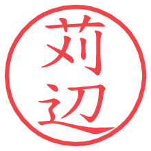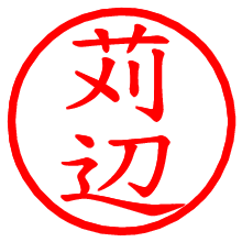 [朱肉の色]を選び、入力窓に“苅辺”と入力して[生成]ボタンを押すと、印影が更新され、リンクから電子印鑑(デジタル印影)がダウンロードできます。 電子印鑑「苅辺」の作り方文字表示が変なときや、文字バランスが悪いときは[字形切替]のチェックボックスでON/OFFを切り替え[生成]しなおしてください。 生成される画像は通常の印影「苅辺.png」と、にじみを表現した少し太めの印影「苅辺B.png」の背面透過PNG形式2種と、鮮明なPDF形式の印影「苅辺.pdf」の計3種類です。 朱肉の微妙な色の違いを7色で表現しました。デフォルト(左端)は、JISが定めた朱肉の色のマンセル値(7.5R 5/14)をRGB値(217,66,54)に変換したものになっています。 「電子透かし」にチェックを入れて[生成]ボタンを押すと、タイムスタンプを電子透かしとして埋め込んだセキュアな電子印鑑が作れます。詳細は別ページの「タイムスタンプと電子透かし」でご覧ください。 苅辺さんの日付印が作れます。「日付スタンプメーカー」は、社内向けの書類に利用されることの多い日付印(データ印)が無料で作れるWebアプリケーションです。中段に日付が入り、上段と下段は、ともに8文字まで文字が入ります。 ![]() 古代文字で落款印が作れます。「落款スタンプメーカー」で作品を引き立たせる落款印が作れます。