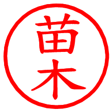 [朱肉の色]を選び、入力窓に“苗木”と入力して[生成]ボタンを押すと、印影が更新され、リンクから電子印鑑(デジタル印影)がダウンロードできます。 電子印鑑「苗木」の作り方文字表示が変なときや、文字バランスが悪いときは[字形切替]のチェックボックスでON/OFFを切り替え[生成]しなおしてください。 生成される画像は通常の印影「苗木.png」と、にじみを表現した少し太めの印影「苗木B.png」の背面透過PNG形式2種と、鮮明なPDF形式の印影「苗木.pdf」の計3種類です。 朱肉の微妙な色の違いを7色で表現しました。デフォルト(左端)は、JISが定めた朱肉の色のマンセル値(7.5R 5/14)をRGB値(217,66,54)に変換したものになっています。 「電子透かし」にチェックを入れて[生成]ボタンを押すと、タイムスタンプを電子透かしとして埋め込んだセキュアな電子印鑑が作れます。詳細は別ページの「タイムスタンプと電子透かし」でご覧ください。 苗木さんの日付印が作れます。「日付スタンプメーカー」は、社内向けの書類に利用されることの多い日付印(データ印)が無料で作れるWebアプリケーションです。中段に日付が入り、上段と下段は、ともに8文字まで文字が入ります。 ![]() 古代文字で落款印が作れます。「落款スタンプメーカー」で作品を引き立たせる落款印が作れます。