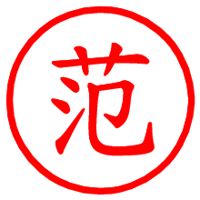 [朱肉の色]を選び、入力窓に“范”と入力して[生成]ボタンを押すと、印影が更新され、リンクから電子印鑑(デジタル印影)がダウンロードできます。 電子印鑑「范」の作り方文字表示が変なときや、文字バランスが悪いときは[字形切替]のチェックボックスでON/OFFを切り替え[生成]しなおしてください。 生成される画像は通常の印影「范.png」と、にじみを表現した少し太めの印影「范B.png」の背面透過PNG形式2種と、鮮明なPDF形式の印影「范.pdf」の計3種類です。 朱肉の微妙な色の違いを7色で表現しました。デフォルト(左端)は、JISが定めた朱肉の色のマンセル値(7.5R 5/14)をRGB値(217,66,54)に変換したものになっています。 「電子透かし」にチェックを入れて[生成]ボタンを押すと、タイムスタンプを電子透かしとして埋め込んだセキュアな電子印鑑が作れます。詳細は別ページの「タイムスタンプと電子透かし」でご覧ください。 范さんの日付印が作れます。「日付スタンプメーカー」は、社内向けの書類に利用されることの多い日付印(データ印)が無料で作れるWebアプリケーションです。中段に日付が入り、上段と下段は、ともに8文字まで文字が入ります。 ![]() 古代文字で落款印が作れます。「落款スタンプメーカー」で作品を引き立たせる落款印が作れます。
