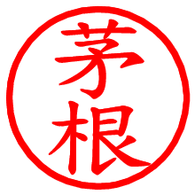 [朱肉の色]を選び、入力窓に“茅根”と入力して[生成]ボタンを押すと、印影が更新され、リンクから電子印鑑(デジタル印影)がダウンロードできます。 電子印鑑「茅根」の作り方文字表示が変なときや、文字バランスが悪いときは[字形切替]のチェックボックスでON/OFFを切り替え[生成]しなおしてください。 生成される画像は通常の印影「茅根.png」と、にじみを表現した少し太めの印影「茅根B.png」の背面透過PNG形式2種と、鮮明なPDF形式の印影「茅根.pdf」の計3種類です。 朱肉の微妙な色の違いを7色で表現しました。デフォルト(左端)は、JISが定めた朱肉の色のマンセル値(7.5R 5/14)をRGB値(217,66,54)に変換したものになっています。 「電子透かし」にチェックを入れて[生成]ボタンを押すと、タイムスタンプを透かしとして埋め込んだセキュアな電子印鑑が作れます。詳細は別ページの「電子透かしとタイムスタンプ」でご覧ください。 茅根さんの日付印が作れます。「日付スタンプメーカー」は、社内向けの書類に利用されることの多い日付印(データ印)が無料で作れるWebアプリケーションです。中段に日付が入り、上段と下段は、ともに8文字まで文字が入ります。 ![]() 古代文字で落款印が作れます。「落款スタンプメーカー」で作品を引き立たせる落款印が作れます。