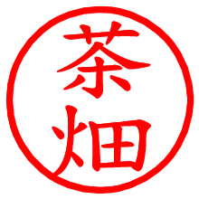 [朱肉の色]を選び、入力窓に“茶畑”と入力して[生成]ボタンを押すと、印影が更新され、リンクから電子印鑑(デジタル印影)がダウンロードできます。 電子印鑑「茶畑」の作り方文字表示が変なときや、文字バランスが悪いときは[字形切替]のチェックボックスでON/OFFを切り替え[生成]しなおしてください。 生成される画像は通常の印影「茶畑.png」と、にじみを表現した少し太めの印影「茶畑B.png」の背面透過PNG形式2種と、鮮明なPDF形式の印影「茶畑.pdf」の計3種類です。 朱肉の微妙な色の違いを7色で表現しました。デフォルト(左端)は、JISが定めた朱肉の色のマンセル値(7.5R 5/14)をRGB値(217,66,54)に変換したものになっています。 「電子透かし」にチェックを入れて[生成]ボタンを押すと、タイムスタンプを電子透かしとして埋め込んだセキュアな電子印鑑が作れます。詳細は別ページの「タイムスタンプと電子透かし」でご覧ください。 茶畑さんの日付印が作れます。「日付スタンプメーカー」は、社内向けの書類に利用されることの多い日付印(データ印)が無料で作れるWebアプリケーションです。中段に日付が入り、上段と下段は、ともに8文字まで文字が入ります。 ![]() 古代文字で落款印が作れます。「落款スタンプメーカー」で作品を引き立たせる落款印が作れます。