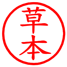 [朱肉の色]を選び、入力窓に“草本”と入力して[生成]ボタンを押すと、印影が更新され、リンクから電子印鑑(デジタル印影)がダウンロードできます。 電子印鑑「草本」の作り方文字表示が変なときや、文字バランスが悪いときは[字形切替]のチェックボックスでON/OFFを切り替え[生成]しなおしてください。 生成される画像は通常の印影「草本.png」と、にじみを表現した少し太めの印影「草本B.png」の背面透過PNG形式2種と、鮮明なPDF形式の印影「草本.pdf」の計3種類です。 朱肉の微妙な色の違いを7色で表現しました。デフォルト(左端)は、JISが定めた朱肉の色のマンセル値(7.5R 5/14)をRGB値(217,66,54)に変換したものになっています。 「電子透かし」にチェックを入れて[生成]ボタンを押すと、タイムスタンプを電子透かしとして埋め込んだセキュアな電子印鑑が作れます。詳細は別ページの「タイムスタンプと電子透かし」でご覧ください。 草本さんの日付印が作れます。「日付スタンプメーカー」は、社内向けの書類に利用されることの多い日付印(データ印)が無料で作れるWebアプリケーションです。中段に日付が入り、上段と下段は、ともに8文字まで文字が入ります。 ![]() 古代文字で落款印が作れます。「落款スタンプメーカー」で作品を引き立たせる落款印が作れます。