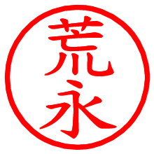 [朱肉の色]を選び、入力窓に“荒永”と入力して[生成]ボタンを押すと、印影が更新され、リンクから電子印鑑(デジタル印影)がダウンロードできます。 電子印鑑「荒永」の作り方文字表示が変なときや、文字バランスが悪いときは[字形切替]のチェックボックスでON/OFFを切り替え[生成]しなおしてください。 生成される画像は通常の印影「荒永.png」と、にじみを表現した少し太めの印影「荒永B.png」の背面透過PNG形式2種と、鮮明なPDF形式の印影「荒永.pdf」の計3種類です。 朱肉の微妙な色の違いを7色で表現しました。デフォルト(左端)は、JISが定めた朱肉の色のマンセル値(7.5R 5/14)をRGB値(217,66,54)に変換したものになっています。 「電子透かし」にチェックを入れて[生成]ボタンを押すと、タイムスタンプを透かしとして埋め込んだセキュアな電子印鑑が作れます。詳細は別ページの「電子透かしとタイムスタンプ」でご覧ください。 荒永さんの日付印が作れます。「日付スタンプメーカー」は、社内向けの書類に利用されることの多い日付印(データ印)が無料で作れるWebアプリケーションです。中段に日付が入り、上段と下段は、ともに8文字まで文字が入ります。 ![]() 古代文字で落款印が作れます。「落款スタンプメーカー」で作品を引き立たせる落款印が作れます。