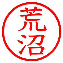 [朱肉の色]を選び、入力窓に“荒沼”と入力して[生成]ボタンを押すと、印影が更新され、リンクから電子印鑑(デジタル印影)がダウンロードできます。 電子印鑑「荒沼」の作り方文字表示が変なときや、文字バランスが悪いときは[字形切替]のチェックボックスでON/OFFを切り替え[生成]しなおしてください。 生成される画像は通常の印影「荒沼.png」と、にじみを表現した少し太めの印影「荒沼B.png」の背面透過PNG形式2種と、鮮明なPDF形式の印影「荒沼.pdf」の計3種類です。 朱肉の微妙な色の違いを7色で表現しました。デフォルト(左端)は、JISが定めた朱肉の色のマンセル値(7.5R 5/14)をRGB値(217,66,54)に変換したものになっています。 「電子透かし」にチェックを入れて[生成]ボタンを押すと、タイムスタンプを透かしとして埋め込んだセキュアな電子印鑑が作れます。詳細は別ページの「電子透かしとタイムスタンプ」でご覧ください。 荒沼さんの日付印が作れます。「日付スタンプメーカー」は、社内向けの書類に利用されることの多い日付印(データ印)が無料で作れるWebアプリケーションです。中段に日付が入り、上段と下段は、ともに8文字まで文字が入ります。 ![]() 古代文字で落款印が作れます。「落款スタンプメーカー」で作品を引き立たせる落款印が作れます。