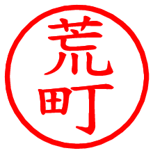 [朱肉の色]を選び、入力窓に“荒町”と入力して[生成]ボタンを押すと、印影が更新され、リンクから電子印鑑(デジタル印影)がダウンロードできます。 電子印鑑「荒町」の作り方文字表示が変なときや、文字バランスが悪いときは[字形切替]のチェックボックスでON/OFFを切り替え[生成]しなおしてください。 生成される画像は通常の印影「荒町.png」と、にじみを表現した少し太めの印影「荒町B.png」の背面透過PNG形式2種と、鮮明なPDF形式の印影「荒町.pdf」の計3種類です。 朱肉の微妙な色の違いを7色で表現しました。デフォルト(左端)は、JISが定めた朱肉の色のマンセル値(7.5R 5/14)をRGB値(217,66,54)に変換したものになっています。 「電子透かし」にチェックを入れて[生成]ボタンを押すと、タイムスタンプを透かしとして埋め込んだセキュアな電子印鑑が作れます。詳細は別ページの「電子透かしとタイムスタンプ」でご覧ください。 荒町さんの日付印が作れます。「日付スタンプメーカー」は、社内向けの書類に利用されることの多い日付印(データ印)が無料で作れるWebアプリケーションです。中段に日付が入り、上段と下段は、ともに8文字まで文字が入ります。 ![]() 古代文字で落款印が作れます。「落款スタンプメーカー」で作品を引き立たせる落款印が作れます。
