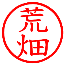 [朱肉の色]を選び、入力窓に“荒畑”と入力して[生成]ボタンを押すと、印影が更新され、リンクから電子印鑑(デジタル印影)がダウンロードできます。 電子印鑑「荒畑」の作り方文字表示が変なときや、文字バランスが悪いときは[字形切替]のチェックボックスでON/OFFを切り替え[生成]しなおしてください。 生成される画像は通常の印影「荒畑.png」と、にじみを表現した少し太めの印影「荒畑B.png」の背面透過PNG形式2種と、鮮明なPDF形式の印影「荒畑.pdf」の計3種類です。 朱肉の微妙な色の違いを7色で表現しました。デフォルト(左端)は、JISが定めた朱肉の色のマンセル値(7.5R 5/14)をRGB値(217,66,54)に変換したものになっています。 「電子透かし」にチェックを入れて[生成]ボタンを押すと、タイムスタンプを電子透かしとして埋め込んだセキュアな電子印鑑が作れます。詳細は別ページの「タイムスタンプと電子透かし」でご覧ください。 荒畑さんの日付印が作れます。「日付スタンプメーカー」は、社内向けの書類に利用されることの多い日付印(データ印)が無料で作れるWebアプリケーションです。中段に日付が入り、上段と下段は、ともに8文字まで文字が入ります。 ![]() 古代文字で落款印が作れます。「落款スタンプメーカー」で作品を引き立たせる落款印が作れます。