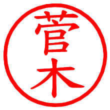 [朱肉の色]を選び、入力窓に“菅木”と入力して[生成]ボタンを押すと、印影が更新され、リンクから電子印鑑(デジタル印影)がダウンロードできます。 電子印鑑「菅木」の作り方文字表示が変なときや、文字バランスが悪いときは[字形切替]のチェックボックスでON/OFFを切り替え[生成]しなおしてください。 生成される画像は通常の印影「菅木.png」と、にじみを表現した少し太めの印影「菅木B.png」の背面透過PNG形式2種と、鮮明なPDF形式の印影「菅木.pdf」の計3種類です。 朱肉の微妙な色の違いを7色で表現しました。デフォルト(左端)は、JISが定めた朱肉の色のマンセル値(7.5R 5/14)をRGB値(217,66,54)に変換したものになっています。 「電子透かし」にチェックを入れて[生成]ボタンを押すと、タイムスタンプを電子透かしとして埋め込んだセキュアな電子印鑑が作れます。詳細は別ページの「タイムスタンプと電子透かし」でご覧ください。 菅木さんの日付印が作れます。「日付スタンプメーカー」は、社内向けの書類に利用されることの多い日付印(データ印)が無料で作れるWebアプリケーションです。中段に日付が入り、上段と下段は、ともに8文字まで文字が入ります。 ![]() 古代文字で落款印が作れます。「落款スタンプメーカー」で作品を引き立たせる落款印が作れます。