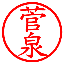 [朱肉の色]を選び、入力窓に“菅泉”と入力して[生成]ボタンを押すと、印影が更新され、リンクから電子印鑑(デジタル印影)がダウンロードできます。 電子印鑑「菅泉」の作り方文字表示が変なときや、文字バランスが悪いときは[字形切替]のチェックボックスでON/OFFを切り替え[生成]しなおしてください。 生成される画像は通常の印影「菅泉.png」と、にじみを表現した少し太めの印影「菅泉B.png」の背面透過PNG形式2種と、鮮明なPDF形式の印影「菅泉.pdf」の計3種類です。 朱肉の微妙な色の違いを7色で表現しました。デフォルト(左端)は、JISが定めた朱肉の色のマンセル値(7.5R 5/14)をRGB値(217,66,54)に変換したものになっています。 「電子透かし」にチェックを入れて[生成]ボタンを押すと、タイムスタンプを電子透かしとして埋め込んだセキュアな電子印鑑が作れます。詳細は別ページの「タイムスタンプと電子透かし」でご覧ください。 菅泉さんの日付印が作れます。「日付スタンプメーカー」は、社内向けの書類に利用されることの多い日付印(データ印)が無料で作れるWebアプリケーションです。中段に日付が入り、上段と下段は、ともに8文字まで文字が入ります。 ![]() 古代文字で落款印が作れます。「落款スタンプメーカー」で作品を引き立たせる落款印が作れます。