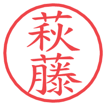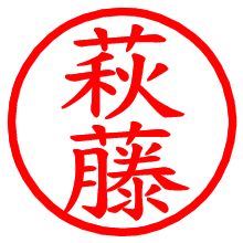 [朱肉の色]を選び、入力窓に“萩藤”と入力して[生成]ボタンを押すと、印影が更新され、リンクから電子印鑑(デジタル印影)がダウンロードできます。 電子印鑑「萩藤」の作り方文字表示が変なときや、文字バランスが悪いときは[字形切替]のチェックボックスでON/OFFを切り替え[生成]しなおしてください。 生成される画像は通常の印影「萩藤.png」と、にじみを表現した少し太めの印影「萩藤B.png」の背面透過PNG形式2種と、鮮明なPDF形式の印影「萩藤.pdf」の計3種類です。 朱肉の微妙な色の違いを7色で表現しました。デフォルト(左端)は、JISが定めた朱肉の色のマンセル値(7.5R 5/14)をRGB値(217,66,54)に変換したものになっています。 「電子透かし」にチェックを入れて[生成]ボタンを押すと、タイムスタンプを電子透かしとして埋め込んだセキュアな電子印鑑が作れます。詳細は別ページの「タイムスタンプと電子透かし」でご覧ください。 萩藤さんの日付印が作れます。「日付スタンプメーカー」は、社内向けの書類に利用されることの多い日付印(データ印)が無料で作れるWebアプリケーションです。中段に日付が入り、上段と下段は、ともに8文字まで文字が入ります。 ![]() 古代文字で落款印が作れます。「落款スタンプメーカー」で作品を引き立たせる落款印が作れます。
