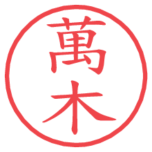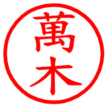 [朱肉の色]を選び、入力窓に“萬木”と入力して[生成]ボタンを押すと、印影が更新され、リンクから電子印鑑(デジタル印影)がダウンロードできます。 電子印鑑「萬木」の作り方文字表示が変なときや、文字バランスが悪いときは[字形切替]のチェックボックスでON/OFFを切り替え[生成]しなおしてください。 生成される画像は通常の印影「萬木.png」と、にじみを表現した少し太めの印影「萬木B.png」の背面透過PNG形式2種と、鮮明なPDF形式の印影「萬木.pdf」の計3種類です。 朱肉の微妙な色の違いを7色で表現しました。デフォルト(左端)は、JISが定めた朱肉の色のマンセル値(7.5R 5/14)をRGB値(217,66,54)に変換したものになっています。 「電子透かし」にチェックを入れて[生成]ボタンを押すと、タイムスタンプを電子透かしとして埋め込んだセキュアな電子印鑑が作れます。詳細は別ページの「タイムスタンプと電子透かし」でご覧ください。 萬木さんの日付印が作れます。「日付スタンプメーカー」は、社内向けの書類に利用されることの多い日付印(データ印)が無料で作れるWebアプリケーションです。中段に日付が入り、上段と下段は、ともに8文字まで文字が入ります。 ![]() 古代文字で落款印が作れます。「落款スタンプメーカー」で作品を引き立たせる落款印が作れます。
