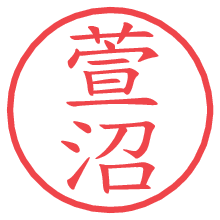 [朱肉の色]を選び、入力窓に“萱沼”と入力して[生成]ボタンを押すと、印影が更新され、リンクから電子印鑑(デジタル印影)がダウンロードできます。 電子印鑑「萱沼」の作り方文字表示が変なときや、文字バランスが悪いときは[字形切替]のチェックボックスでON/OFFを切り替え[生成]しなおしてください。 生成される画像は通常の印影「萱沼.png」と、にじみを表現した少し太めの印影「萱沼B.png」の背面透過PNG形式2種と、鮮明なPDF形式の印影「萱沼.pdf」の計3種類です。 朱肉の微妙な色の違いを7色で表現しました。デフォルト(左端)は、JISが定めた朱肉の色のマンセル値(7.5R 5/14)をRGB値(217,66,54)に変換したものになっています。 「電子透かし」にチェックを入れて[生成]ボタンを押すと、タイムスタンプを電子透かしとして埋め込んだセキュアな電子印鑑が作れます。詳細は別ページの「タイムスタンプと電子透かし」でご覧ください。 萱沼さんの日付印が作れます。「日付スタンプメーカー」は、社内向けの書類に利用されることの多い日付印(データ印)が無料で作れるWebアプリケーションです。中段に日付が入り、上段と下段は、ともに8文字まで文字が入ります。 ![]() 古代文字で落款印が作れます。「落款スタンプメーカー」で作品を引き立たせる落款印が作れます。