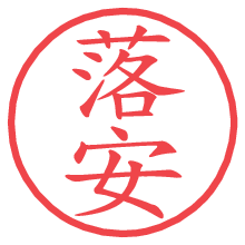 [朱肉の色]を選び、入力窓に“落安”と入力して[生成]ボタンを押すと、印影が更新され、リンクから電子印鑑(デジタル印影)がダウンロードできます。 電子印鑑「落安」の作り方文字表示が変なときや、文字バランスが悪いときは[字形切替]のチェックボックスでON/OFFを切り替え[生成]しなおしてください。 生成される画像は通常の印影「落安.png」と、にじみを表現した少し太めの印影「落安B.png」の背面透過PNG形式2種と、鮮明なPDF形式の印影「落安.pdf」の計3種類です。 朱肉の微妙な色の違いを7色で表現しました。デフォルト(左端)は、JISが定めた朱肉の色のマンセル値(7.5R 5/14)をRGB値(217,66,54)に変換したものになっています。 「電子透かし」にチェックを入れて[生成]ボタンを押すと、タイムスタンプを電子透かしとして埋め込んだセキュアな電子印鑑が作れます。詳細は別ページの「タイムスタンプと電子透かし」でご覧ください。 落安さんの日付印が作れます。「日付スタンプメーカー」は、社内向けの書類に利用されることの多い日付印(データ印)が無料で作れるWebアプリケーションです。中段に日付が入り、上段と下段は、ともに8文字まで文字が入ります。 ![]() 古代文字で落款印が作れます。「落款スタンプメーカー」で作品を引き立たせる落款印が作れます。