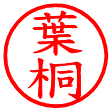 [朱肉の色]を選び、入力窓に“葉桐”と入力して[生成]ボタンを押すと、印影が更新され、リンクから電子印鑑(デジタル印影)がダウンロードできます。 電子印鑑「葉桐」の作り方文字表示が変なときや、文字バランスが悪いときは[字形切替]のチェックボックスでON/OFFを切り替え[生成]しなおしてください。 生成される画像は通常の印影「葉桐.png」と、にじみを表現した少し太めの印影「葉桐B.png」の背面透過PNG形式2種と、鮮明なPDF形式の印影「葉桐.pdf」の計3種類です。 朱肉の微妙な色の違いを7色で表現しました。デフォルト(左端)は、JISが定めた朱肉の色のマンセル値(7.5R 5/14)をRGB値(217,66,54)に変換したものになっています。 「電子透かし」にチェックを入れて[生成]ボタンを押すと、タイムスタンプを電子透かしとして埋め込んだセキュアな電子印鑑が作れます。詳細は別ページの「タイムスタンプと電子透かし」でご覧ください。 葉桐さんの日付印が作れます。「日付スタンプメーカー」は、社内向けの書類に利用されることの多い日付印(データ印)が無料で作れるWebアプリケーションです。中段に日付が入り、上段と下段は、ともに8文字まで文字が入ります。 ![]() 古代文字で落款印が作れます。「落款スタンプメーカー」で作品を引き立たせる落款印が作れます。