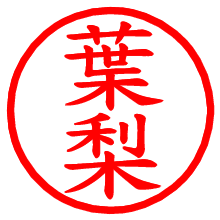 [朱肉の色]を選び、入力窓に“葉梨”と入力して[生成]ボタンを押すと、印影が更新され、リンクから電子印鑑(デジタル印影)がダウンロードできます。 電子印鑑「葉梨」の作り方文字表示が変なときや、文字バランスが悪いときは[字形切替]のチェックボックスでON/OFFを切り替え[生成]しなおしてください。 生成される画像は通常の印影「葉梨.png」と、にじみを表現した少し太めの印影「葉梨B.png」の背面透過PNG形式2種と、鮮明なPDF形式の印影「葉梨.pdf」の計3種類です。 朱肉の微妙な色の違いを7色で表現しました。デフォルト(左端)は、JISが定めた朱肉の色のマンセル値(7.5R 5/14)をRGB値(217,66,54)に変換したものになっています。 「電子透かし」にチェックを入れて[生成]ボタンを押すと、タイムスタンプを電子透かしとして埋め込んだセキュアな電子印鑑が作れます。詳細は別ページの「タイムスタンプと電子透かし」でご覧ください。 葉梨さんの日付印が作れます。「日付スタンプメーカー」は、社内向けの書類に利用されることの多い日付印(データ印)が無料で作れるWebアプリケーションです。中段に日付が入り、上段と下段は、ともに8文字まで文字が入ります。 ![]() 古代文字で落款印が作れます。「落款スタンプメーカー」で作品を引き立たせる落款印が作れます。