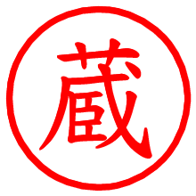 [朱肉の色]を選び、入力窓に“蔵”と入力して[生成]ボタンを押すと、印影が更新され、リンクから電子印鑑(デジタル印影)がダウンロードできます。 電子印鑑「蔵」の作り方文字表示が変なときや、文字バランスが悪いときは[字形切替]のチェックボックスでON/OFFを切り替え[生成]しなおしてください。 生成される画像は通常の印影「蔵.png」と、にじみを表現した少し太めの印影「蔵B.png」の背面透過PNG形式2種と、鮮明なPDF形式の印影「蔵.pdf」の計3種類です。 朱肉の微妙な色の違いを7色で表現しました。デフォルト(左端)は、JISが定めた朱肉の色のマンセル値(7.5R 5/14)をRGB値(217,66,54)に変換したものになっています。 「電子透かし」にチェックを入れて[生成]ボタンを押すと、タイムスタンプを電子透かしとして埋め込んだセキュアな電子印鑑が作れます。詳細は別ページの「タイムスタンプと電子透かし」でご覧ください。 蔵さんの日付印が作れます。「日付スタンプメーカー」は、社内向けの書類に利用されることの多い日付印(データ印)が無料で作れるWebアプリケーションです。中段に日付が入り、上段と下段は、ともに8文字まで文字が入ります。 ![]() 古代文字で落款印が作れます。「落款スタンプメーカー」で作品を引き立たせる落款印が作れます。