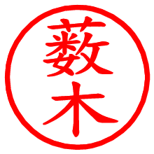[朱肉の色]を選び、入力窓に“薮木”と入力して[生成]ボタンを押すと、印影が更新され、リンクから電子印鑑(デジタル印影)がダウンロードできます。 電子印鑑「薮木」の作り方文字表示が変なときや、文字バランスが悪いときは[字形切替]のチェックボックスでON/OFFを切り替え[生成]しなおしてください。 生成される画像は通常の印影「薮木.png」と、にじみを表現した少し太めの印影「薮木B.png」の背面透過PNG形式2種と、鮮明なPDF形式の印影「薮木.pdf」の計3種類です。 朱肉の微妙な色の違いを7色で表現しました。デフォルト(左端)は、JISが定めた朱肉の色のマンセル値(7.5R 5/14)をRGB値(217,66,54)に変換したものになっています。 「電子透かし」にチェックを入れて[生成]ボタンを押すと、タイムスタンプを電子透かしとして埋め込んだセキュアな電子印鑑が作れます。詳細は別ページの「タイムスタンプと電子透かし」でご覧ください。 薮木さんの日付印が作れます。「日付スタンプメーカー」は、社内向けの書類に利用されることの多い日付印(データ印)が無料で作れるWebアプリケーションです。中段に日付が入り、上段と下段は、ともに8文字まで文字が入ります。 ![]() 古代文字で落款印が作れます。「落款スタンプメーカー」で作品を引き立たせる落款印が作れます。