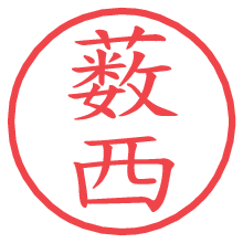 [朱肉の色]を選び、入力窓に“薮西”と入力して[生成]ボタンを押すと、印影が更新され、リンクから電子印鑑(デジタル印影)がダウンロードできます。 電子印鑑「薮西」の作り方文字表示が変なときや、文字バランスが悪いときは[字形切替]のチェックボックスでON/OFFを切り替え[生成]しなおしてください。 生成される画像は通常の印影「薮西.png」と、にじみを表現した少し太めの印影「薮西B.png」の背面透過PNG形式2種と、鮮明なPDF形式の印影「薮西.pdf」の計3種類です。 朱肉の微妙な色の違いを7色で表現しました。デフォルト(左端)は、JISが定めた朱肉の色のマンセル値(7.5R 5/14)をRGB値(217,66,54)に変換したものになっています。 「電子透かし」にチェックを入れて[生成]ボタンを押すと、タイムスタンプを電子透かしとして埋め込んだセキュアな電子印鑑が作れます。詳細は別ページの「タイムスタンプと電子透かし」でご覧ください。 薮西さんの日付印が作れます。「日付スタンプメーカー」は、社内向けの書類に利用されることの多い日付印(データ印)が無料で作れるWebアプリケーションです。中段に日付が入り、上段と下段は、ともに8文字まで文字が入ります。 ![]() 古代文字で落款印が作れます。「落款スタンプメーカー」で作品を引き立たせる落款印が作れます。