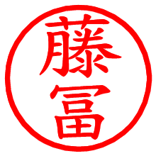 [朱肉の色]を選び、入力窓に“藤冨”と入力して[生成]ボタンを押すと、印影が更新され、リンクから電子印鑑(デジタル印影)がダウンロードできます。 電子印鑑「藤冨」の作り方文字表示が変なときや、文字バランスが悪いときは[字形切替]のチェックボックスでON/OFFを切り替え[生成]しなおしてください。 生成される画像は通常の印影「藤冨.png」と、にじみを表現した少し太めの印影「藤冨B.png」の背面透過PNG形式2種と、鮮明なPDF形式の印影「藤冨.pdf」の計3種類です。 朱肉の微妙な色の違いを7色で表現しました。デフォルト(左端)は、JISが定めた朱肉の色のマンセル値(7.5R 5/14)をRGB値(217,66,54)に変換したものになっています。 「電子透かし」にチェックを入れて[生成]ボタンを押すと、タイムスタンプを電子透かしとして埋め込んだセキュアな電子印鑑が作れます。詳細は別ページの「タイムスタンプと電子透かし」でご覧ください。 藤冨さんの日付印が作れます。「日付スタンプメーカー」は、社内向けの書類に利用されることの多い日付印(データ印)が無料で作れるWebアプリケーションです。中段に日付が入り、上段と下段は、ともに8文字まで文字が入ります。 ![]() 古代文字で落款印が作れます。「落款スタンプメーカー」で作品を引き立たせる落款印が作れます。