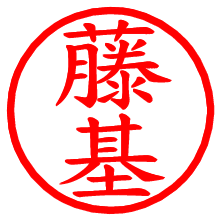[朱肉の色]を選び、入力窓に“藤基”と入力して[生成]ボタンを押すと、印影が更新され、リンクから電子印鑑(デジタル印影)がダウンロードできます。 電子印鑑「藤基」の作り方文字表示が変なときや、文字バランスが悪いときは[字形切替]のチェックボックスでON/OFFを切り替え[生成]しなおしてください。 生成される画像は通常の印影「藤基.png」と、にじみを表現した少し太めの印影「藤基B.png」の背面透過PNG形式2種と、鮮明なPDF形式の印影「藤基.pdf」の計3種類です。 朱肉の微妙な色の違いを7色で表現しました。デフォルト(左端)は、JISが定めた朱肉の色のマンセル値(7.5R 5/14)をRGB値(217,66,54)に変換したものになっています。 「電子透かし」にチェックを入れて[生成]ボタンを押すと、タイムスタンプを電子透かしとして埋め込んだセキュアな電子印鑑が作れます。詳細は別ページの「タイムスタンプと電子透かし」でご覧ください。 藤基さんの日付印が作れます。「日付スタンプメーカー」は、社内向けの書類に利用されることの多い日付印(データ印)が無料で作れるWebアプリケーションです。中段に日付が入り、上段と下段は、ともに8文字まで文字が入ります。 ![]() 古代文字で落款印が作れます。「落款スタンプメーカー」で作品を引き立たせる落款印が作れます。