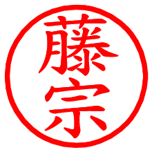 [朱肉の色]を選び、入力窓に“藤宗”と入力して[生成]ボタンを押すと、印影が更新され、リンクから電子印鑑(デジタル印影)がダウンロードできます。 電子印鑑「藤宗」の作り方文字表示が変なときや、文字バランスが悪いときは[字形切替]のチェックボックスでON/OFFを切り替え[生成]しなおしてください。 生成される画像は通常の印影「藤宗.png」と、にじみを表現した少し太めの印影「藤宗B.png」の背面透過PNG形式2種と、鮮明なPDF形式の印影「藤宗.pdf」の計3種類です。 朱肉の微妙な色の違いを7色で表現しました。デフォルト(左端)は、JISが定めた朱肉の色のマンセル値(7.5R 5/14)をRGB値(217,66,54)に変換したものになっています。 「電子透かし」にチェックを入れて[生成]ボタンを押すと、タイムスタンプを電子透かしとして埋め込んだセキュアな電子印鑑が作れます。詳細は別ページの「タイムスタンプと電子透かし」でご覧ください。 藤宗さんの日付印が作れます。「日付スタンプメーカー」は、社内向けの書類に利用されることの多い日付印(データ印)が無料で作れるWebアプリケーションです。中段に日付が入り、上段と下段は、ともに8文字まで文字が入ります。 ![]() 古代文字で落款印が作れます。「落款スタンプメーカー」で作品を引き立たせる落款印が作れます。