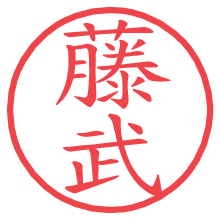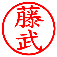 [朱肉の色]を選び、入力窓に“藤武”と入力して[生成]ボタンを押すと、印影が更新され、リンクから電子印鑑(デジタル印影)がダウンロードできます。 電子印鑑「藤武」の作り方文字表示が変なときや、文字バランスが悪いときは[字形切替]のチェックボックスでON/OFFを切り替え[生成]しなおしてください。 生成される画像は通常の印影「藤武.png」と、にじみを表現した少し太めの印影「藤武B.png」の背面透過PNG形式2種と、鮮明なPDF形式の印影「藤武.pdf」の計3種類です。 朱肉の微妙な色の違いを7色で表現しました。デフォルト(左端)は、JISが定めた朱肉の色のマンセル値(7.5R 5/14)をRGB値(217,66,54)に変換したものになっています。 「電子透かし」にチェックを入れて[生成]ボタンを押すと、タイムスタンプを電子透かしとして埋め込んだセキュアな電子印鑑が作れます。詳細は別ページの「タイムスタンプと電子透かし」でご覧ください。 藤武さんの日付印が作れます。「日付スタンプメーカー」は、社内向けの書類に利用されることの多い日付印(データ印)が無料で作れるWebアプリケーションです。中段に日付が入り、上段と下段は、ともに8文字まで文字が入ります。 ![]() 古代文字で落款印が作れます。「落款スタンプメーカー」で作品を引き立たせる落款印が作れます。