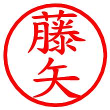 [朱肉の色]を選び、入力窓に“藤矢”と入力して[生成]ボタンを押すと、印影が更新され、リンクから電子印鑑(デジタル印影)がダウンロードできます。 電子印鑑「藤矢」の作り方文字表示が変なときや、文字バランスが悪いときは[字形切替]のチェックボックスでON/OFFを切り替え[生成]しなおしてください。 生成される画像は通常の印影「藤矢.png」と、にじみを表現した少し太めの印影「藤矢B.png」の背面透過PNG形式2種と、鮮明なPDF形式の印影「藤矢.pdf」の計3種類です。 朱肉の微妙な色の違いを7色で表現しました。デフォルト(左端)は、JISが定めた朱肉の色のマンセル値(7.5R 5/14)をRGB値(217,66,54)に変換したものになっています。 「電子透かし」にチェックを入れて[生成]ボタンを押すと、タイムスタンプを透かしとして埋め込んだセキュアな電子印鑑が作れます。詳細は別ページの「電子透かしとタイムスタンプ」でご覧ください。 藤矢さんの日付印が作れます。「日付スタンプメーカー」は、社内向けの書類に利用されることの多い日付印(データ印)が無料で作れるWebアプリケーションです。中段に日付が入り、上段と下段は、ともに8文字まで文字が入ります。 ![]() 古代文字で落款印が作れます。「落款スタンプメーカー」で作品を引き立たせる落款印が作れます。