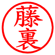 [朱肉の色]を選び、入力窓に“藤裏”と入力して[生成]ボタンを押すと、印影が更新され、リンクから電子印鑑(デジタル印影)がダウンロードできます。 電子印鑑「藤裏」の作り方文字表示が変なときや、文字バランスが悪いときは[字形切替]のチェックボックスでON/OFFを切り替え[生成]しなおしてください。 生成される画像は通常の印影「藤裏.png」と、にじみを表現した少し太めの印影「藤裏B.png」の背面透過PNG形式2種と、鮮明なPDF形式の印影「藤裏.pdf」の計3種類です。 朱肉の微妙な色の違いを7色で表現しました。デフォルト(左端)は、JISが定めた朱肉の色のマンセル値(7.5R 5/14)をRGB値(217,66,54)に変換したものになっています。 「電子透かし」にチェックを入れて[生成]ボタンを押すと、タイムスタンプを電子透かしとして埋め込んだセキュアな電子印鑑が作れます。詳細は別ページの「タイムスタンプと電子透かし」でご覧ください。 藤裏さんの日付印が作れます。「日付スタンプメーカー」は、社内向けの書類に利用されることの多い日付印(データ印)が無料で作れるWebアプリケーションです。中段に日付が入り、上段と下段は、ともに8文字まで文字が入ります。 ![]() 古代文字で落款印が作れます。「落款スタンプメーカー」で作品を引き立たせる落款印が作れます。