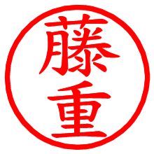 [朱肉の色]を選び、入力窓に“藤重”と入力して[生成]ボタンを押すと、印影が更新され、リンクから電子印鑑(デジタル印影)がダウンロードできます。 電子印鑑「藤重」の作り方文字表示が変なときや、文字バランスが悪いときは[字形切替]のチェックボックスでON/OFFを切り替え[生成]しなおしてください。 生成される画像は通常の印影「藤重.png」と、にじみを表現した少し太めの印影「藤重B.png」の背面透過PNG形式2種と、鮮明なPDF形式の印影「藤重.pdf」の計3種類です。 朱肉の微妙な色の違いを7色で表現しました。デフォルト(左端)は、JISが定めた朱肉の色のマンセル値(7.5R 5/14)をRGB値(217,66,54)に変換したものになっています。 「電子透かし」にチェックを入れて[生成]ボタンを押すと、タイムスタンプを電子透かしとして埋め込んだセキュアな電子印鑑が作れます。詳細は別ページの「タイムスタンプと電子透かし」でご覧ください。 藤重さんの日付印が作れます。「日付スタンプメーカー」は、社内向けの書類に利用されることの多い日付印(データ印)が無料で作れるWebアプリケーションです。中段に日付が入り、上段と下段は、ともに8文字まで文字が入ります。 ![]() 古代文字で落款印が作れます。「落款スタンプメーカー」で作品を引き立たせる落款印が作れます。