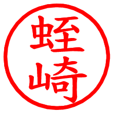 [朱肉の色]を選び、入力窓に“蛭崎”と入力して[生成]ボタンを押すと、印影が更新され、リンクから電子印鑑(デジタル印影)がダウンロードできます。 電子印鑑「蛭崎」の作り方文字表示が変なときや、文字バランスが悪いときは[字形切替]のチェックボックスでON/OFFを切り替え[生成]しなおしてください。 生成される画像は通常の印影「蛭崎.png」と、にじみを表現した少し太めの印影「蛭崎B.png」の背面透過PNG形式2種と、鮮明なPDF形式の印影「蛭崎.pdf」の計3種類です。 朱肉の微妙な色の違いを7色で表現しました。デフォルト(左端)は、JISが定めた朱肉の色のマンセル値(7.5R 5/14)をRGB値(217,66,54)に変換したものになっています。 「電子透かし」にチェックを入れて[生成]ボタンを押すと、タイムスタンプを電子透かしとして埋め込んだセキュアな電子印鑑が作れます。詳細は別ページの「タイムスタンプと電子透かし」でご覧ください。 蛭崎さんの日付印が作れます。「日付スタンプメーカー」は、社内向けの書類に利用されることの多い日付印(データ印)が無料で作れるWebアプリケーションです。中段に日付が入り、上段と下段は、ともに8文字まで文字が入ります。 ![]() 古代文字で落款印が作れます。「落款スタンプメーカー」で作品を引き立たせる落款印が作れます。
