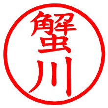 [朱肉の色]を選び、入力窓に“蟹川”と入力して[生成]ボタンを押すと、印影が更新され、リンクから電子印鑑(デジタル印影)がダウンロードできます。 電子印鑑「蟹川」の作り方文字表示が変なときや、文字バランスが悪いときは[字形切替]のチェックボックスでON/OFFを切り替え[生成]しなおしてください。 生成される画像は通常の印影「蟹川.png」と、にじみを表現した少し太めの印影「蟹川B.png」の背面透過PNG形式2種と、鮮明なPDF形式の印影「蟹川.pdf」の計3種類です。 朱肉の微妙な色の違いを7色で表現しました。デフォルト(左端)は、JISが定めた朱肉の色のマンセル値(7.5R 5/14)をRGB値(217,66,54)に変換したものになっています。 「電子透かし」にチェックを入れて[生成]ボタンを押すと、タイムスタンプを電子透かしとして埋め込んだセキュアな電子印鑑が作れます。詳細は別ページの「タイムスタンプと電子透かし」でご覧ください。 蟹川さんの日付印が作れます。「日付スタンプメーカー」は、社内向けの書類に利用されることの多い日付印(データ印)が無料で作れるWebアプリケーションです。中段に日付が入り、上段と下段は、ともに8文字まで文字が入ります。 ![]() 古代文字で落款印が作れます。「落款スタンプメーカー」で作品を引き立たせる落款印が作れます。