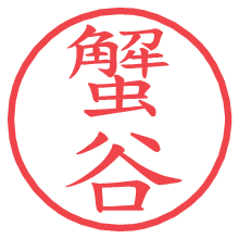 [朱肉の色]を選び、入力窓に“蟹谷”と入力して[生成]ボタンを押すと、印影が更新され、リンクから電子印鑑(デジタル印影)がダウンロードできます。 電子印鑑「蟹谷」の作り方文字表示が変なときや、文字バランスが悪いときは[字形切替]のチェックボックスでON/OFFを切り替え[生成]しなおしてください。 生成される画像は通常の印影「蟹谷.png」と、にじみを表現した少し太めの印影「蟹谷B.png」の背面透過PNG形式2種と、鮮明なPDF形式の印影「蟹谷.pdf」の計3種類です。 朱肉の微妙な色の違いを7色で表現しました。デフォルト(左端)は、JISが定めた朱肉の色のマンセル値(7.5R 5/14)をRGB値(217,66,54)に変換したものになっています。 「電子透かし」にチェックを入れて[生成]ボタンを押すと、タイムスタンプを電子透かしとして埋め込んだセキュアな電子印鑑が作れます。詳細は別ページの「タイムスタンプと電子透かし」でご覧ください。 蟹谷さんの日付印が作れます。「日付スタンプメーカー」は、社内向けの書類に利用されることの多い日付印(データ印)が無料で作れるWebアプリケーションです。中段に日付が入り、上段と下段は、ともに8文字まで文字が入ります。 ![]() 古代文字で落款印が作れます。「落款スタンプメーカー」で作品を引き立たせる落款印が作れます。