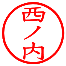 [朱肉の色]を選び、入力窓に“西ノ内”と入力して[生成]ボタンを押すと、印影が更新され、リンクから電子印鑑(デジタル印影)がダウンロードできます。 電子印鑑「西ノ内」の作り方文字表示が変なときや、文字バランスが悪いときは[字形切替]のチェックボックスでON/OFFを切り替え[生成]しなおしてください。 生成される画像は通常の印影「西ノ内.png」と、にじみを表現した少し太めの印影「西ノ内B.png」の背面透過PNG形式2種と、鮮明なPDF形式の印影「西ノ内.pdf」の計3種類です。 朱肉の微妙な色の違いを7色で表現しました。デフォルト(左端)は、JISが定めた朱肉の色のマンセル値(7.5R 5/14)をRGB値(217,66,54)に変換したものになっています。 「電子透かし」にチェックを入れて[生成]ボタンを押すと、タイムスタンプを電子透かしとして埋め込んだセキュアな電子印鑑が作れます。詳細は別ページの「タイムスタンプと電子透かし」でご覧ください。 西ノ内さんの日付印が作れます。「日付スタンプメーカー」は、社内向けの書類に利用されることの多い日付印(データ印)が無料で作れるWebアプリケーションです。中段に日付が入り、上段と下段は、ともに8文字まで文字が入ります。 ![]() 古代文字で落款印が作れます。「落款スタンプメーカー」で作品を引き立たせる落款印が作れます。
