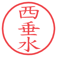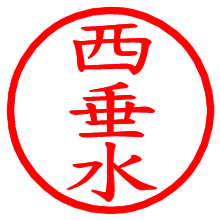 [朱肉の色]を選び、入力窓に“西垂水”と入力して[生成]ボタンを押すと、印影が更新され、リンクから電子印鑑(デジタル印影)がダウンロードできます。 電子印鑑「西垂水」の作り方文字表示が変なときや、文字バランスが悪いときは[字形切替]のチェックボックスでON/OFFを切り替え[生成]しなおしてください。 生成される画像は通常の印影「西垂水.png」と、にじみを表現した少し太めの印影「西垂水B.png」の背面透過PNG形式2種と、鮮明なPDF形式の印影「西垂水.pdf」の計3種類です。 朱肉の微妙な色の違いを7色で表現しました。デフォルト(左端)は、JISが定めた朱肉の色のマンセル値(7.5R 5/14)をRGB値(217,66,54)に変換したものになっています。 「電子透かし」にチェックを入れて[生成]ボタンを押すと、タイムスタンプを電子透かしとして埋め込んだセキュアな電子印鑑が作れます。詳細は別ページの「タイムスタンプと電子透かし」でご覧ください。 西垂水さんの日付印が作れます。「日付スタンプメーカー」は、社内向けの書類に利用されることの多い日付印(データ印)が無料で作れるWebアプリケーションです。中段に日付が入り、上段と下段は、ともに8文字まで文字が入ります。 ![]() 古代文字で落款印が作れます。「落款スタンプメーカー」で作品を引き立たせる落款印が作れます。