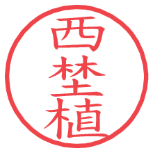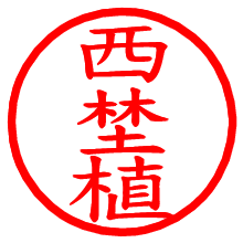 [朱肉の色]を選び、入力窓に“西埜植”と入力して[生成]ボタンを押すと、印影が更新され、リンクから電子印鑑(デジタル印影)がダウンロードできます。 電子印鑑「西埜植」の作り方文字表示が変なときや、文字バランスが悪いときは[字形切替]のチェックボックスでON/OFFを切り替え[生成]しなおしてください。 生成される画像は通常の印影「西埜植.png」と、にじみを表現した少し太めの印影「西埜植B.png」の背面透過PNG形式2種と、鮮明なPDF形式の印影「西埜植.pdf」の計3種類です。 朱肉の微妙な色の違いを7色で表現しました。デフォルト(左端)は、JISが定めた朱肉の色のマンセル値(7.5R 5/14)をRGB値(217,66,54)に変換したものになっています。 「電子透かし」にチェックを入れて[生成]ボタンを押すと、タイムスタンプを電子透かしとして埋め込んだセキュアな電子印鑑が作れます。詳細は別ページの「タイムスタンプと電子透かし」でご覧ください。 西埜植さんの日付印が作れます。「日付スタンプメーカー」は、社内向けの書類に利用されることの多い日付印(データ印)が無料で作れるWebアプリケーションです。中段に日付が入り、上段と下段は、ともに8文字まで文字が入ります。 ![]() 古代文字で落款印が作れます。「落款スタンプメーカー」で作品を引き立たせる落款印が作れます。