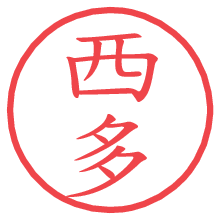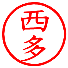 [朱肉の色]を選び、入力窓に“西多”と入力して[生成]ボタンを押すと、印影が更新され、リンクから電子印鑑(デジタル印影)がダウンロードできます。 電子印鑑「西多」の作り方文字表示が変なときや、文字バランスが悪いときは[字形切替]のチェックボックスでON/OFFを切り替え[生成]しなおしてください。 生成される画像は通常の印影「西多.png」と、にじみを表現した少し太めの印影「西多B.png」の背面透過PNG形式2種と、鮮明なPDF形式の印影「西多.pdf」の計3種類です。 朱肉の微妙な色の違いを7色で表現しました。デフォルト(左端)は、JISが定めた朱肉の色のマンセル値(7.5R 5/14)をRGB値(217,66,54)に変換したものになっています。 「電子透かし」にチェックを入れて[生成]ボタンを押すと、タイムスタンプを電子透かしとして埋め込んだセキュアな電子印鑑が作れます。詳細は別ページの「タイムスタンプと電子透かし」でご覧ください。 西多さんの日付印が作れます。「日付スタンプメーカー」は、社内向けの書類に利用されることの多い日付印(データ印)が無料で作れるWebアプリケーションです。中段に日付が入り、上段と下段は、ともに8文字まで文字が入ります。 ![]() 古代文字で落款印が作れます。「落款スタンプメーカー」で作品を引き立たせる落款印が作れます。