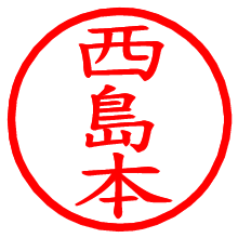 [朱肉の色]を選び、入力窓に“西島本”と入力して[生成]ボタンを押すと、印影が更新され、リンクから電子印鑑(デジタル印影)がダウンロードできます。 電子印鑑「西島本」の作り方文字表示が変なときや、文字バランスが悪いときは[字形切替]のチェックボックスでON/OFFを切り替え[生成]しなおしてください。 生成される画像は通常の印影「西島本.png」と、にじみを表現した少し太めの印影「西島本B.png」の背面透過PNG形式2種と、鮮明なPDF形式の印影「西島本.pdf」の計3種類です。 朱肉の微妙な色の違いを7色で表現しました。デフォルト(左端)は、JISが定めた朱肉の色のマンセル値(7.5R 5/14)をRGB値(217,66,54)に変換したものになっています。 「電子透かし」にチェックを入れて[生成]ボタンを押すと、タイムスタンプを透かしとして埋め込んだセキュアな電子印鑑が作れます。詳細は別ページの「電子透かしとタイムスタンプ」でご覧ください。 西島本さんの日付印が作れます。「日付スタンプメーカー」は、社内向けの書類に利用されることの多い日付印(データ印)が無料で作れるWebアプリケーションです。中段に日付が入り、上段と下段は、ともに8文字まで文字が入ります。 ![]() 古代文字で落款印が作れます。「落款スタンプメーカー」で作品を引き立たせる落款印が作れます。