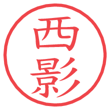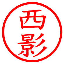 [朱肉の色]を選び、入力窓に“西影”と入力して[生成]ボタンを押すと、印影が更新され、リンクから電子印鑑(デジタル印影)がダウンロードできます。 電子印鑑「西影」の作り方文字表示が変なときや、文字バランスが悪いときは[字形切替]のチェックボックスでON/OFFを切り替え[生成]しなおしてください。 生成される画像は通常の印影「西影.png」と、にじみを表現した少し太めの印影「西影B.png」の背面透過PNG形式2種と、鮮明なPDF形式の印影「西影.pdf」の計3種類です。 朱肉の微妙な色の違いを7色で表現しました。デフォルト(左端)は、JISが定めた朱肉の色のマンセル値(7.5R 5/14)をRGB値(217,66,54)に変換したものになっています。 「電子透かし」にチェックを入れて[生成]ボタンを押すと、タイムスタンプを電子透かしとして埋め込んだセキュアな電子印鑑が作れます。詳細は別ページの「タイムスタンプと電子透かし」でご覧ください。 西影さんの日付印が作れます。「日付スタンプメーカー」は、社内向けの書類に利用されることの多い日付印(データ印)が無料で作れるWebアプリケーションです。中段に日付が入り、上段と下段は、ともに8文字まで文字が入ります。 ![]() 古代文字で落款印が作れます。「落款スタンプメーカー」で作品を引き立たせる落款印が作れます。