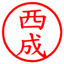 [朱肉の色]を選び、入力窓に“西成”と入力して[生成]ボタンを押すと、印影が更新され、リンクから電子印鑑(デジタル印影)がダウンロードできます。 電子印鑑「西成」の作り方文字表示が変なときや、文字バランスが悪いときは[字形切替]のチェックボックスでON/OFFを切り替え[生成]しなおしてください。 生成される画像は通常の印影「西成.png」と、にじみを表現した少し太めの印影「西成B.png」の背面透過PNG形式2種と、鮮明なPDF形式の印影「西成.pdf」の計3種類です。 朱肉の微妙な色の違いを7色で表現しました。デフォルト(左端)は、JISが定めた朱肉の色のマンセル値(7.5R 5/14)をRGB値(217,66,54)に変換したものになっています。 「電子透かし」にチェックを入れて[生成]ボタンを押すと、タイムスタンプを電子透かしとして埋め込んだセキュアな電子印鑑が作れます。詳細は別ページの「タイムスタンプと電子透かし」でご覧ください。 西成さんの日付印が作れます。「日付スタンプメーカー」は、社内向けの書類に利用されることの多い日付印(データ印)が無料で作れるWebアプリケーションです。中段に日付が入り、上段と下段は、ともに8文字まで文字が入ります。 ![]() 古代文字で落款印が作れます。「落款スタンプメーカー」で作品を引き立たせる落款印が作れます。