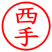 [朱肉の色]を選び、入力窓に“西手”と入力して[生成]ボタンを押すと、印影が更新され、リンクから電子印鑑(デジタル印影)がダウンロードできます。 電子印鑑「西手」の作り方文字表示が変なときや、文字バランスが悪いときは[字形切替]のチェックボックスでON/OFFを切り替え[生成]しなおしてください。 生成される画像は通常の印影「西手.png」と、にじみを表現した少し太めの印影「西手B.png」の背面透過PNG形式2種と、鮮明なPDF形式の印影「西手.pdf」の計3種類です。 朱肉の微妙な色の違いを7色で表現しました。デフォルト(左端)は、JISが定めた朱肉の色のマンセル値(7.5R 5/14)をRGB値(217,66,54)に変換したものになっています。 「電子透かし」にチェックを入れて[生成]ボタンを押すと、タイムスタンプを電子透かしとして埋め込んだセキュアな電子印鑑が作れます。詳細は別ページの「タイムスタンプと電子透かし」でご覧ください。 西手さんの日付印が作れます。「日付スタンプメーカー」は、社内向けの書類に利用されることの多い日付印(データ印)が無料で作れるWebアプリケーションです。中段に日付が入り、上段と下段は、ともに8文字まで文字が入ります。 ![]() 古代文字で落款印が作れます。「落款スタンプメーカー」で作品を引き立たせる落款印が作れます。