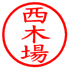 [朱肉の色]を選び、入力窓に“西木場”と入力して[生成]ボタンを押すと、印影が更新され、リンクから電子印鑑(デジタル印影)がダウンロードできます。 電子印鑑「西木場」の作り方文字表示が変なときや、文字バランスが悪いときは[字形切替]のチェックボックスでON/OFFを切り替え[生成]しなおしてください。 生成される画像は通常の印影「西木場.png」と、にじみを表現した少し太めの印影「西木場B.png」の背面透過PNG形式2種と、鮮明なPDF形式の印影「西木場.pdf」の計3種類です。 朱肉の微妙な色の違いを7色で表現しました。デフォルト(左端)は、JISが定めた朱肉の色のマンセル値(7.5R 5/14)をRGB値(217,66,54)に変換したものになっています。 「電子透かし」にチェックを入れて[生成]ボタンを押すと、タイムスタンプを透かしとして埋め込んだセキュアな電子印鑑が作れます。詳細は別ページの「電子透かしとタイムスタンプ」でご覧ください。 西木場さんの日付印が作れます。「日付スタンプメーカー」は、社内向けの書類に利用されることの多い日付印(データ印)が無料で作れるWebアプリケーションです。中段に日付が入り、上段と下段は、ともに8文字まで文字が入ります。 ![]() 古代文字で落款印が作れます。「落款スタンプメーカー」で作品を引き立たせる落款印が作れます。
