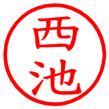 [朱肉の色]を選び、入力窓に“西池”と入力して[生成]ボタンを押すと、印影が更新され、リンクから電子印鑑(デジタル印影)がダウンロードできます。 電子印鑑「西池」の作り方文字表示が変なときや、文字バランスが悪いときは[字形切替]のチェックボックスでON/OFFを切り替え[生成]しなおしてください。 生成される画像は通常の印影「西池.png」と、にじみを表現した少し太めの印影「西池B.png」の背面透過PNG形式2種と、鮮明なPDF形式の印影「西池.pdf」の計3種類です。 朱肉の微妙な色の違いを7色で表現しました。デフォルト(左端)は、JISが定めた朱肉の色のマンセル値(7.5R 5/14)をRGB値(217,66,54)に変換したものになっています。 「電子透かし」にチェックを入れて[生成]ボタンを押すと、タイムスタンプを電子透かしとして埋め込んだセキュアな電子印鑑が作れます。詳細は別ページの「タイムスタンプと電子透かし」でご覧ください。 西池さんの日付印が作れます。「日付スタンプメーカー」は、社内向けの書類に利用されることの多い日付印(データ印)が無料で作れるWebアプリケーションです。中段に日付が入り、上段と下段は、ともに8文字まで文字が入ります。 ![]() 古代文字で落款印が作れます。「落款スタンプメーカー」で作品を引き立たせる落款印が作れます。