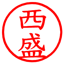 [朱肉の色]を選び、入力窓に“西盛”と入力して[生成]ボタンを押すと、印影が更新され、リンクから電子印鑑(デジタル印影)がダウンロードできます。 電子印鑑「西盛」の作り方文字表示が変なときや、文字バランスが悪いときは[字形切替]のチェックボックスでON/OFFを切り替え[生成]しなおしてください。 生成される画像は通常の印影「西盛.png」と、にじみを表現した少し太めの印影「西盛B.png」の背面透過PNG形式2種と、鮮明なPDF形式の印影「西盛.pdf」の計3種類です。 朱肉の微妙な色の違いを7色で表現しました。デフォルト(左端)は、JISが定めた朱肉の色のマンセル値(7.5R 5/14)をRGB値(217,66,54)に変換したものになっています。 「電子透かし」にチェックを入れて[生成]ボタンを押すと、タイムスタンプを電子透かしとして埋め込んだセキュアな電子印鑑が作れます。詳細は別ページの「タイムスタンプと電子透かし」でご覧ください。 西盛さんの日付印が作れます。「日付スタンプメーカー」は、社内向けの書類に利用されることの多い日付印(データ印)が無料で作れるWebアプリケーションです。中段に日付が入り、上段と下段は、ともに8文字まで文字が入ります。 ![]() 古代文字で落款印が作れます。「落款スタンプメーカー」で作品を引き立たせる落款印が作れます。