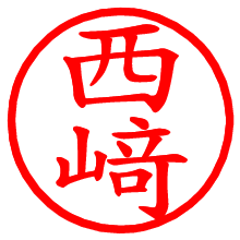[朱肉の色]を選び、入力窓に“西﨑”と入力して[生成]ボタンを押すと、印影が更新され、リンクから電子印鑑(デジタル印影)がダウンロードできます。 電子印鑑「西﨑」の作り方文字表示が変なときや、文字バランスが悪いときは[字形切替]のチェックボックスでON/OFFを切り替え[生成]しなおしてください。 生成される画像は通常の印影「西﨑.png」と、にじみを表現した少し太めの印影「西﨑B.png」の背面透過PNG形式2種と、鮮明なPDF形式の印影「西﨑.pdf」の計3種類です。 朱肉の微妙な色の違いを7色で表現しました。デフォルト(左端)は、JISが定めた朱肉の色のマンセル値(7.5R 5/14)をRGB値(217,66,54)に変換したものになっています。 「電子透かし」にチェックを入れて[生成]ボタンを押すと、タイムスタンプを電子透かしとして埋め込んだセキュアな電子印鑑が作れます。詳細は別ページの「タイムスタンプと電子透かし」でご覧ください。 西﨑さんの日付印が作れます。「日付スタンプメーカー」は、社内向けの書類に利用されることの多い日付印(データ印)が無料で作れるWebアプリケーションです。中段に日付が入り、上段と下段は、ともに8文字まで文字が入ります。 ![]() 古代文字で落款印が作れます。「落款スタンプメーカー」で作品を引き立たせる落款印が作れます。