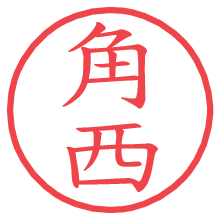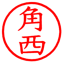 [朱肉の色]を選び、入力窓に“角西”と入力して[生成]ボタンを押すと、印影が更新され、リンクから電子印鑑(デジタル印影)がダウンロードできます。 電子印鑑「角西」の作り方文字表示が変なときや、文字バランスが悪いときは[字形切替]のチェックボックスでON/OFFを切り替え[生成]しなおしてください。 生成される画像は通常の印影「角西.png」と、にじみを表現した少し太めの印影「角西B.png」の背面透過PNG形式2種と、鮮明なPDF形式の印影「角西.pdf」の計3種類です。 朱肉の微妙な色の違いを7色で表現しました。デフォルト(左端)は、JISが定めた朱肉の色のマンセル値(7.5R 5/14)をRGB値(217,66,54)に変換したものになっています。 「電子透かし」にチェックを入れて[生成]ボタンを押すと、タイムスタンプを電子透かしとして埋め込んだセキュアな電子印鑑が作れます。詳細は別ページの「タイムスタンプと電子透かし」でご覧ください。 角西さんの日付印が作れます。「日付スタンプメーカー」は、社内向けの書類に利用されることの多い日付印(データ印)が無料で作れるWebアプリケーションです。中段に日付が入り、上段と下段は、ともに8文字まで文字が入ります。 ![]() 古代文字で落款印が作れます。「落款スタンプメーカー」で作品を引き立たせる落款印が作れます。