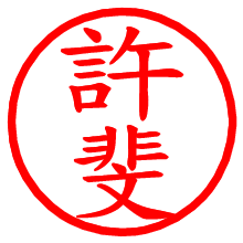 [朱肉の色]を選び、入力窓に“許斐”と入力して[生成]ボタンを押すと、印影が更新され、リンクから電子印鑑(デジタル印影)がダウンロードできます。 電子印鑑「許斐」の作り方文字表示が変なときや、文字バランスが悪いときは[字形切替]のチェックボックスでON/OFFを切り替え[生成]しなおしてください。 生成される画像は通常の印影「許斐.png」と、にじみを表現した少し太めの印影「許斐B.png」の背面透過PNG形式2種と、鮮明なPDF形式の印影「許斐.pdf」の計3種類です。 朱肉の微妙な色の違いを7色で表現しました。デフォルト(左端)は、JISが定めた朱肉の色のマンセル値(7.5R 5/14)をRGB値(217,66,54)に変換したものになっています。 「電子透かし」にチェックを入れて[生成]ボタンを押すと、タイムスタンプを電子透かしとして埋め込んだセキュアな電子印鑑が作れます。詳細は別ページの「タイムスタンプと電子透かし」でご覧ください。 許斐さんの日付印が作れます。「日付スタンプメーカー」は、社内向けの書類に利用されることの多い日付印(データ印)が無料で作れるWebアプリケーションです。中段に日付が入り、上段と下段は、ともに8文字まで文字が入ります。 ![]() 古代文字で落款印が作れます。「落款スタンプメーカー」で作品を引き立たせる落款印が作れます。