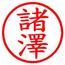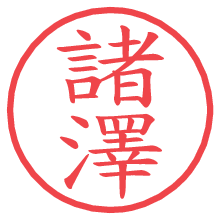 [朱肉の色]を選び、入力窓に“諸澤”と入力して[生成]ボタンを押すと、印影が更新され、リンクから電子印鑑(デジタル印影)がダウンロードできます。 電子印鑑「諸澤」の作り方文字表示が変なときや、文字バランスが悪いときは[字形切替]のチェックボックスでON/OFFを切り替え[生成]しなおしてください。 生成される画像は通常の印影「諸澤.png」と、にじみを表現した少し太めの印影「諸澤B.png」の背面透過PNG形式2種と、鮮明なPDF形式の印影「諸澤.pdf」の計3種類です。 朱肉の微妙な色の違いを7色で表現しました。デフォルト(左端)は、JISが定めた朱肉の色のマンセル値(7.5R 5/14)をRGB値(217,66,54)に変換したものになっています。 「電子透かし」にチェックを入れて[生成]ボタンを押すと、タイムスタンプを透かしとして埋め込んだセキュアな電子印鑑が作れます。詳細は別ページの「電子透かしとタイムスタンプ」でご覧ください。 諸澤さんの日付印が作れます。「日付スタンプメーカー」は、社内向けの書類に利用されることの多い日付印(データ印)が無料で作れるWebアプリケーションです。中段に日付が入り、上段と下段は、ともに8文字まで文字が入ります。 ![]() 古代文字で落款印が作れます。「落款スタンプメーカー」で作品を引き立たせる落款印が作れます。